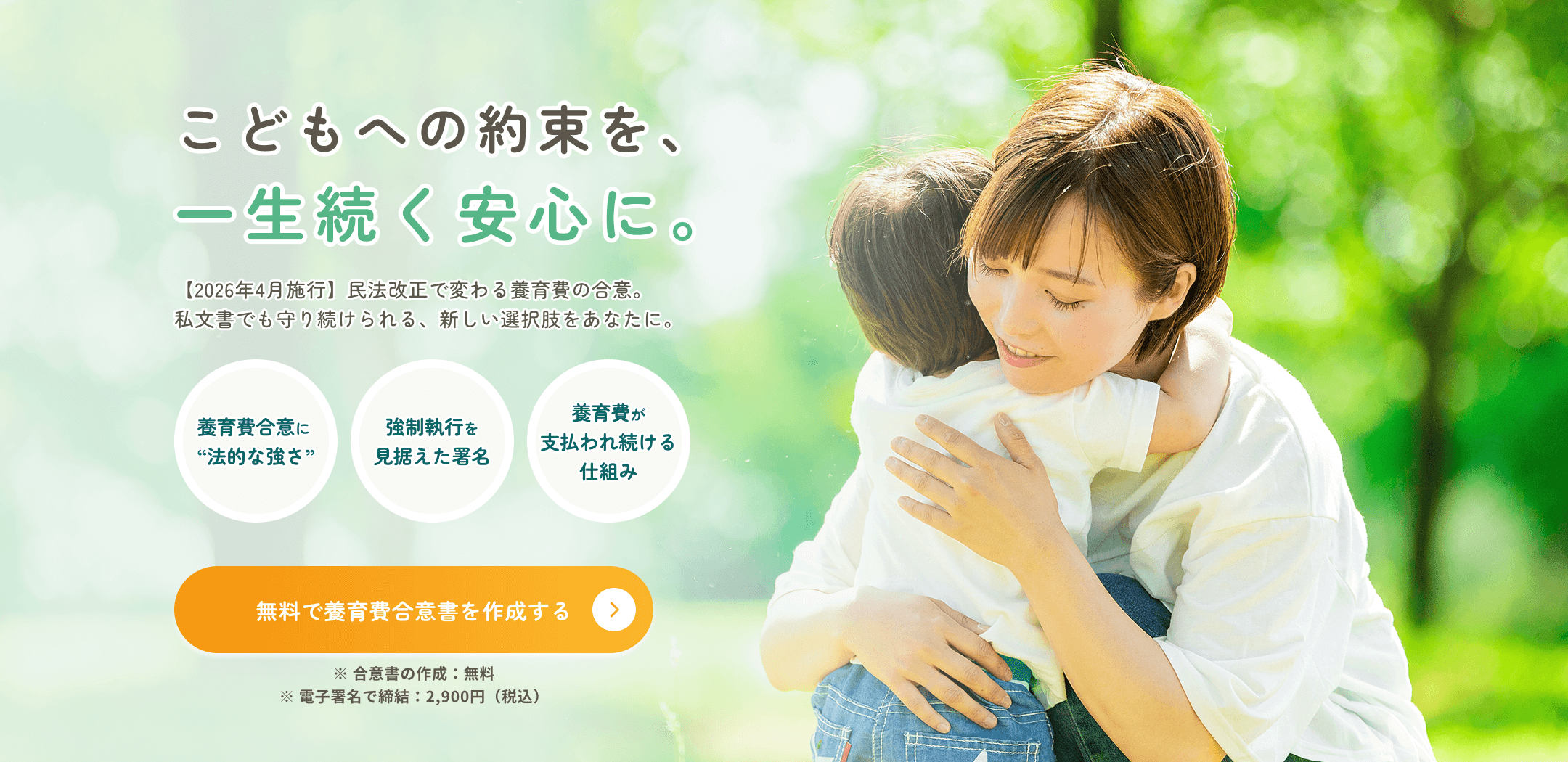 A1. 2026年4月1日施行の民法改正により、一定の要件を満たしたオンライン作成の養育費合意があれば、公正証書や調停調書がなくても強制執行が可能とされる制度になります。ただし、文書の内容や成立過程に不備がある場合は、強制執行が認められない可能性があります。