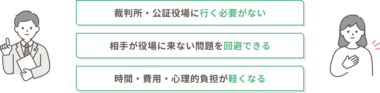 すべてオンラインで完結します。離婚前・別居中でも、当事者が対面する必要はありません。